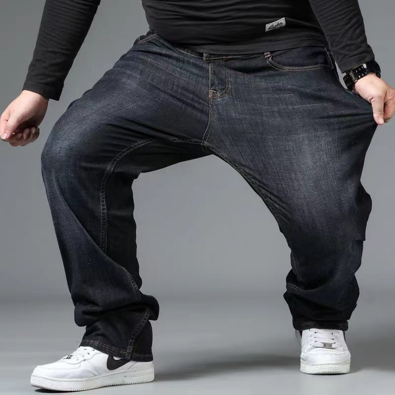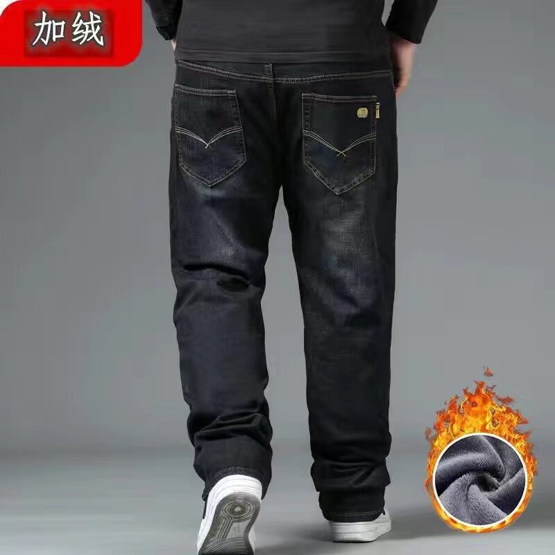 胖子牛仔裤男加绒加厚肥佬长裤子加肥高腰宽松弹力直筒300斤 超大