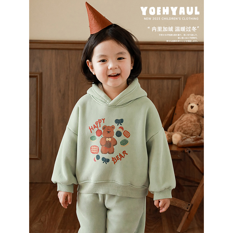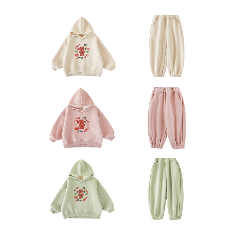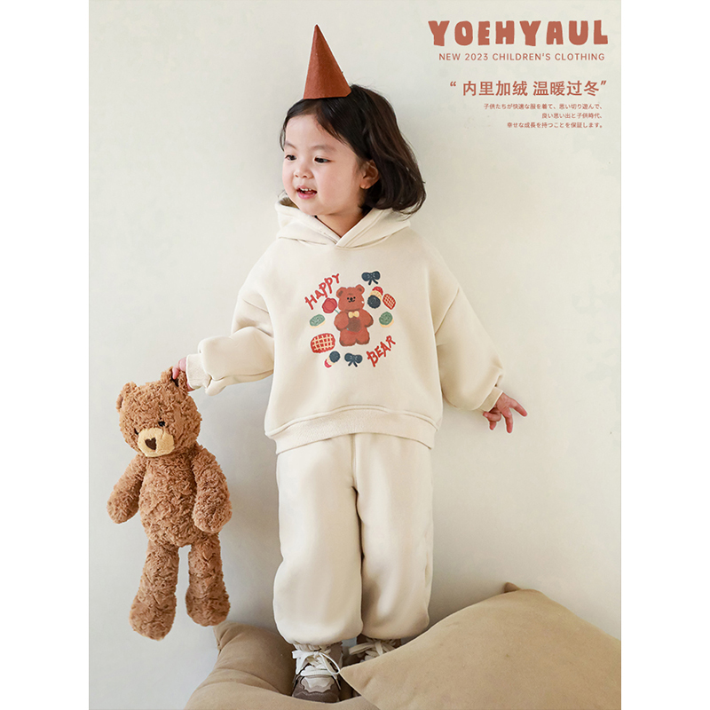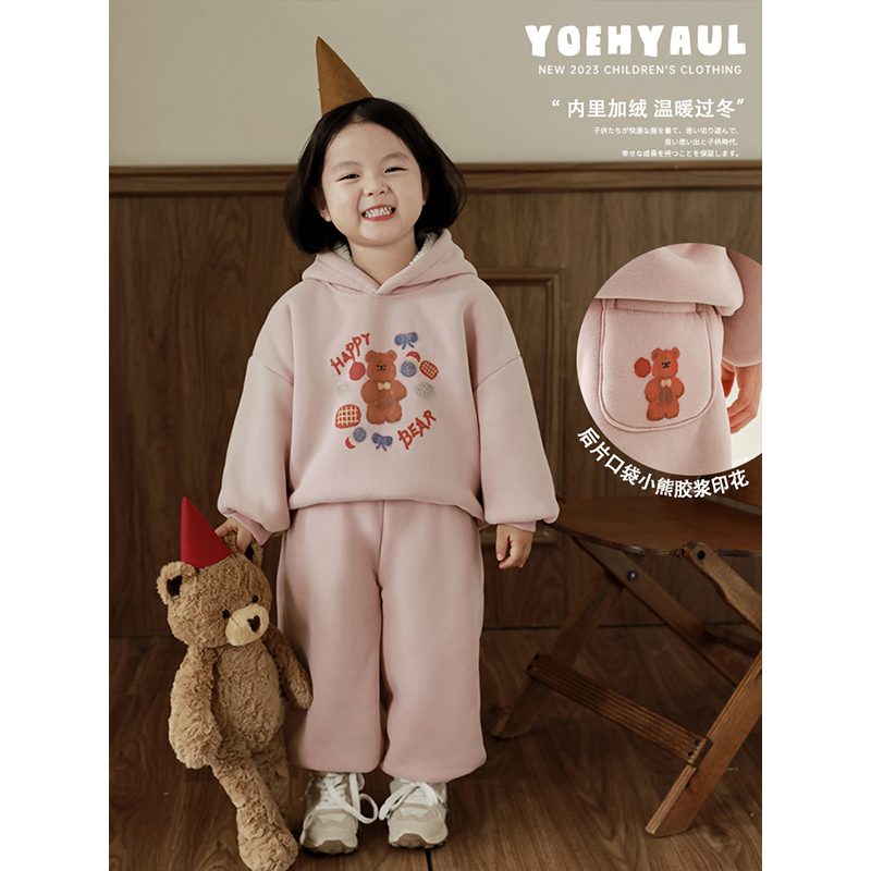 幼悠儿童可乐萌熊家居服胶浆印花套装冬季女宝宝防风保暖卫衣卫裤