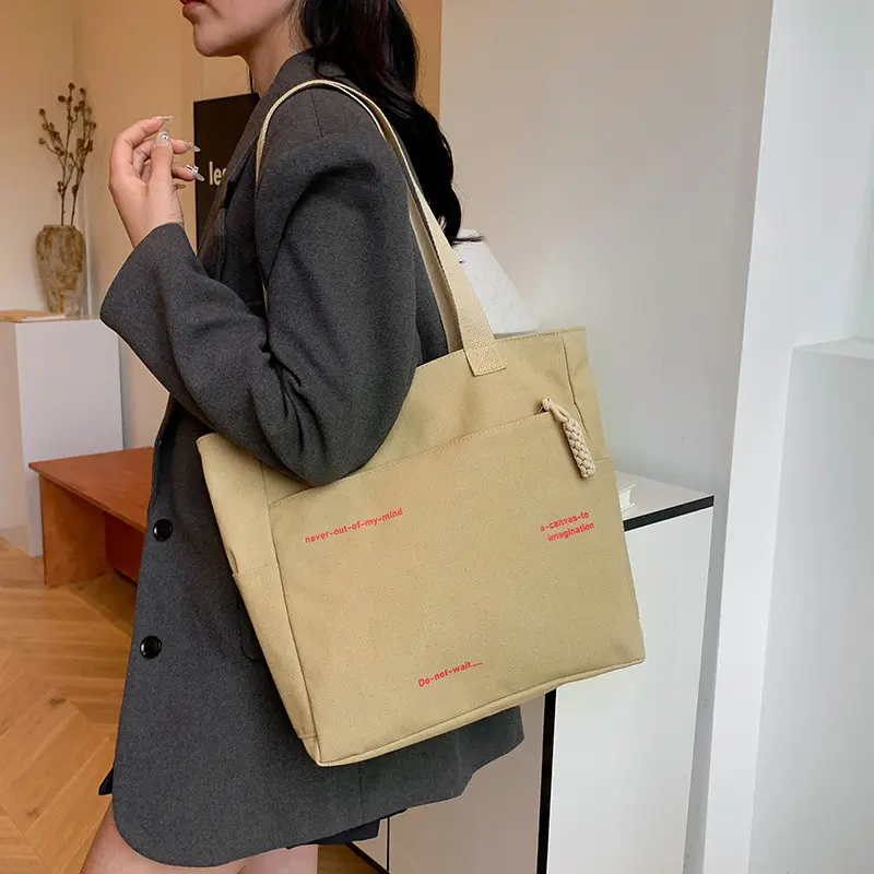 春季帆布包包女2024新款时尚大容量通勤手提袋学生上课单肩托特包