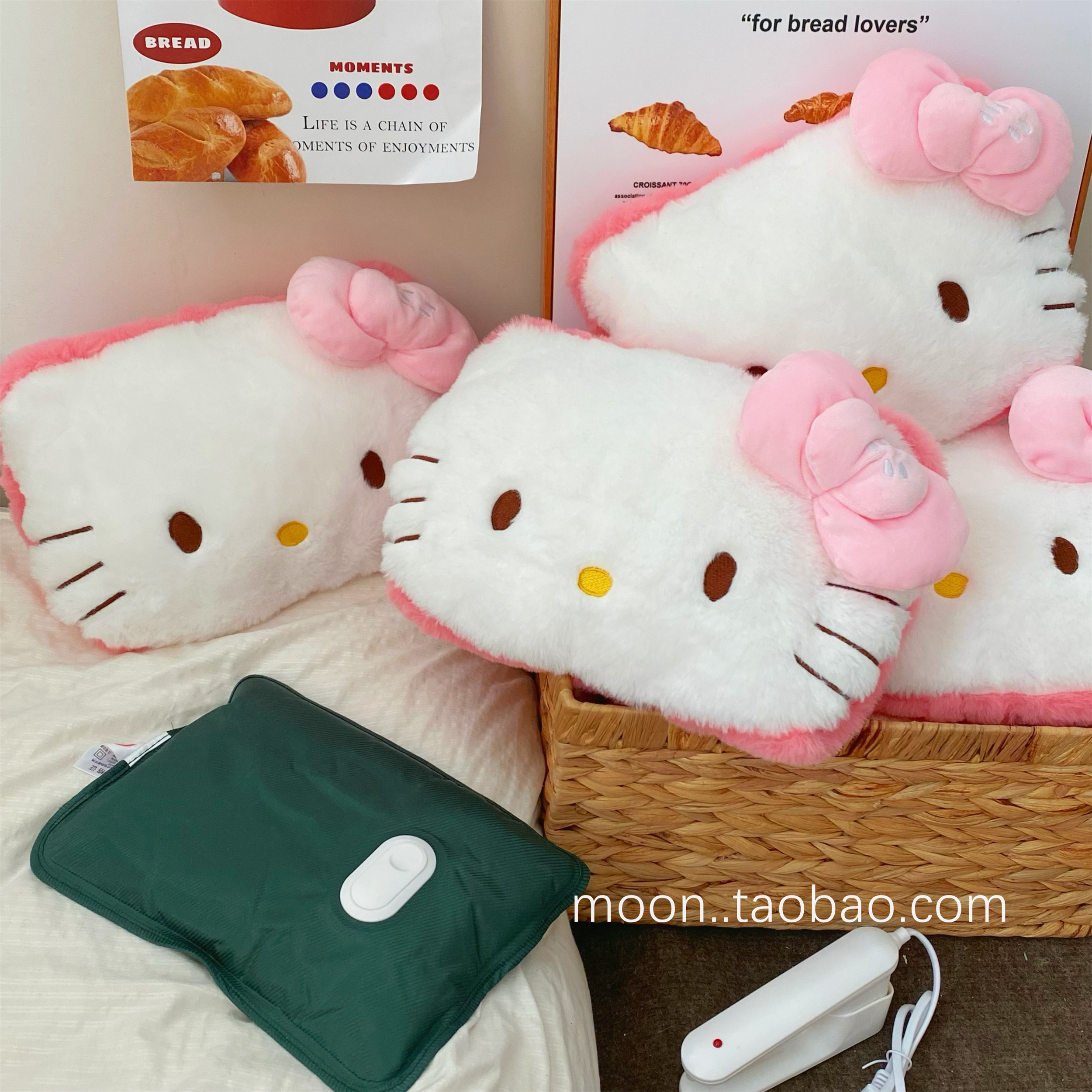 可爱卡通蝴蝶结猫咪充电款防爆热水袋女生毛绒玩偶敷肚子暖宝宝袋