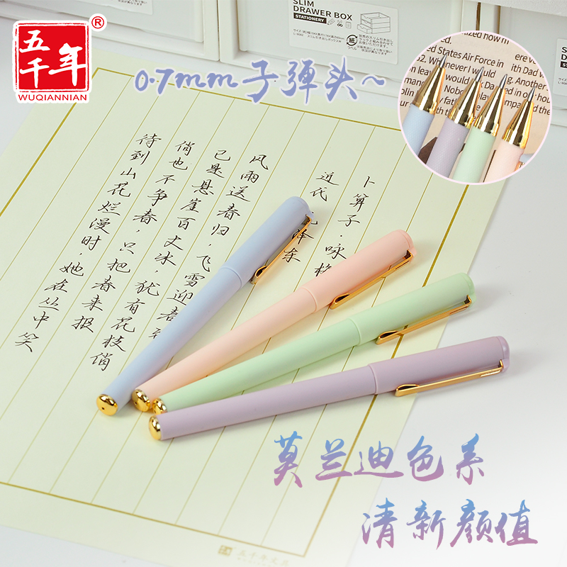 莫兰迪款中性笔0.7mm黑色水性笔商务签字笔学生成人练字专用笔好看的高颜值顺滑初中女生简约仙女风碳素黑笔