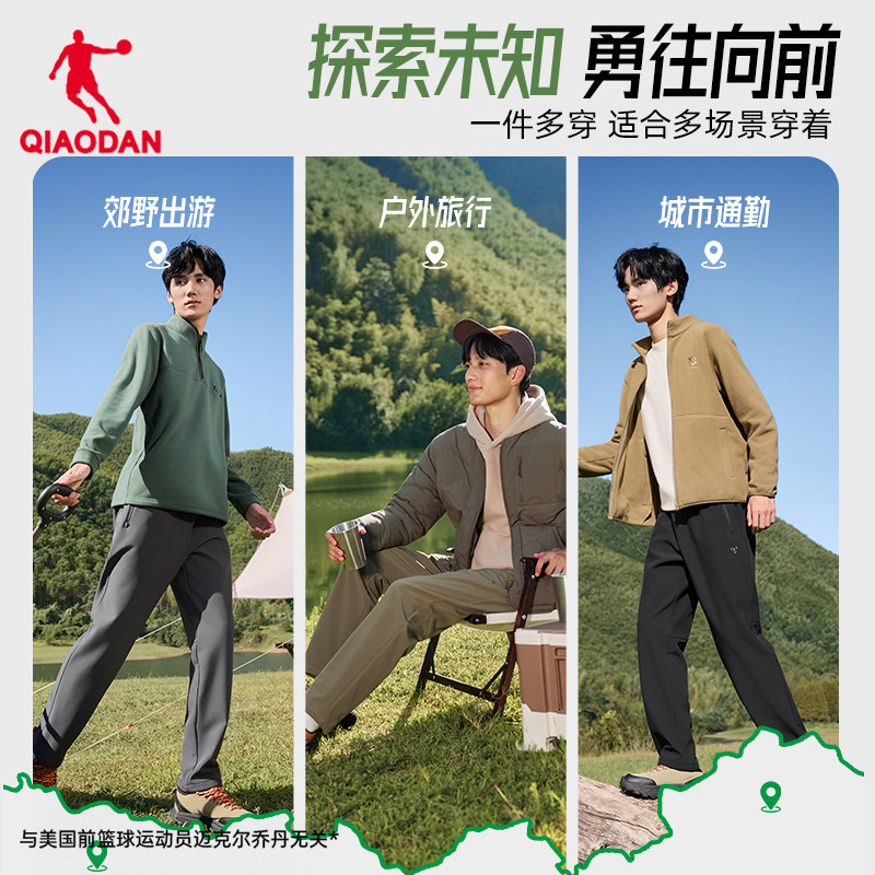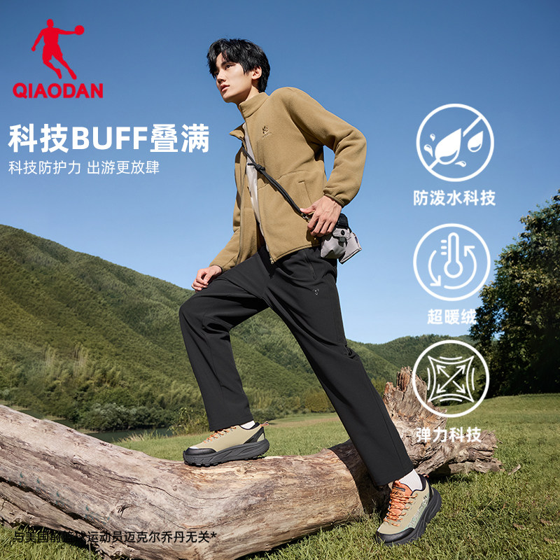乔丹加绒运动长裤子户外防风防水男2025秋冬新款加厚宽松直筒休闲