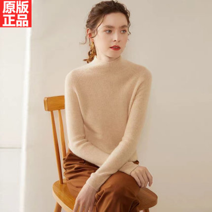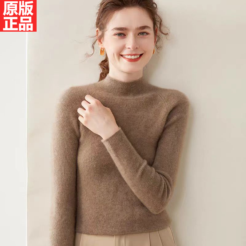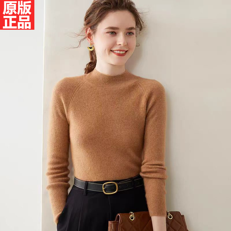 半高领100%纯山羊绒衫女秋冬季新毛衣修身内搭弹力针织羊毛打底衫
