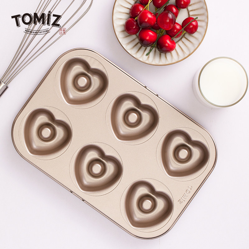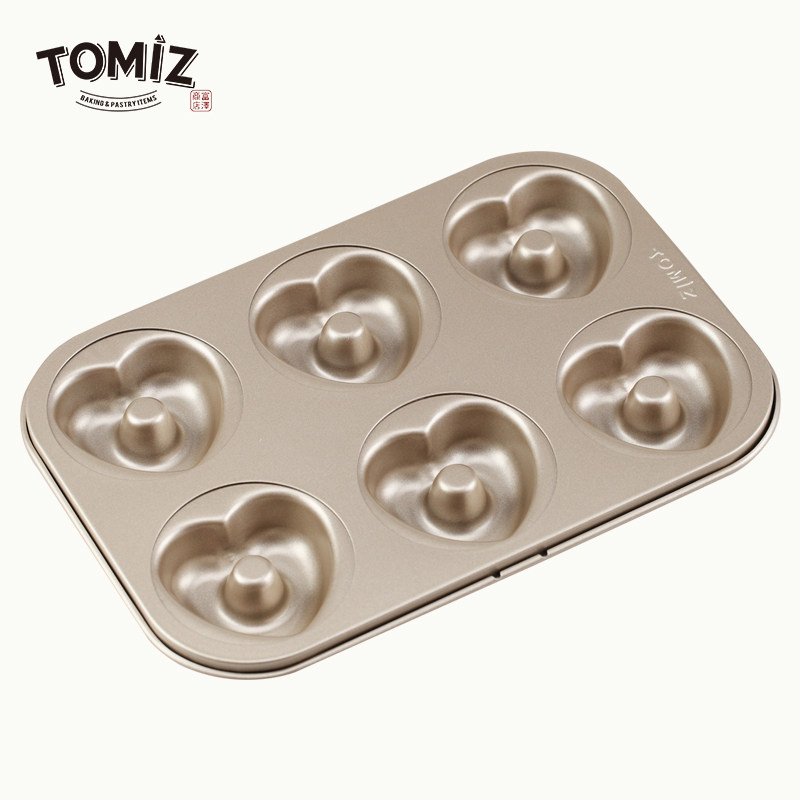 TOMIZ富泽商店烘焙器具6连心形甜甜圈模烘焙圆形面包饼干小不粘
