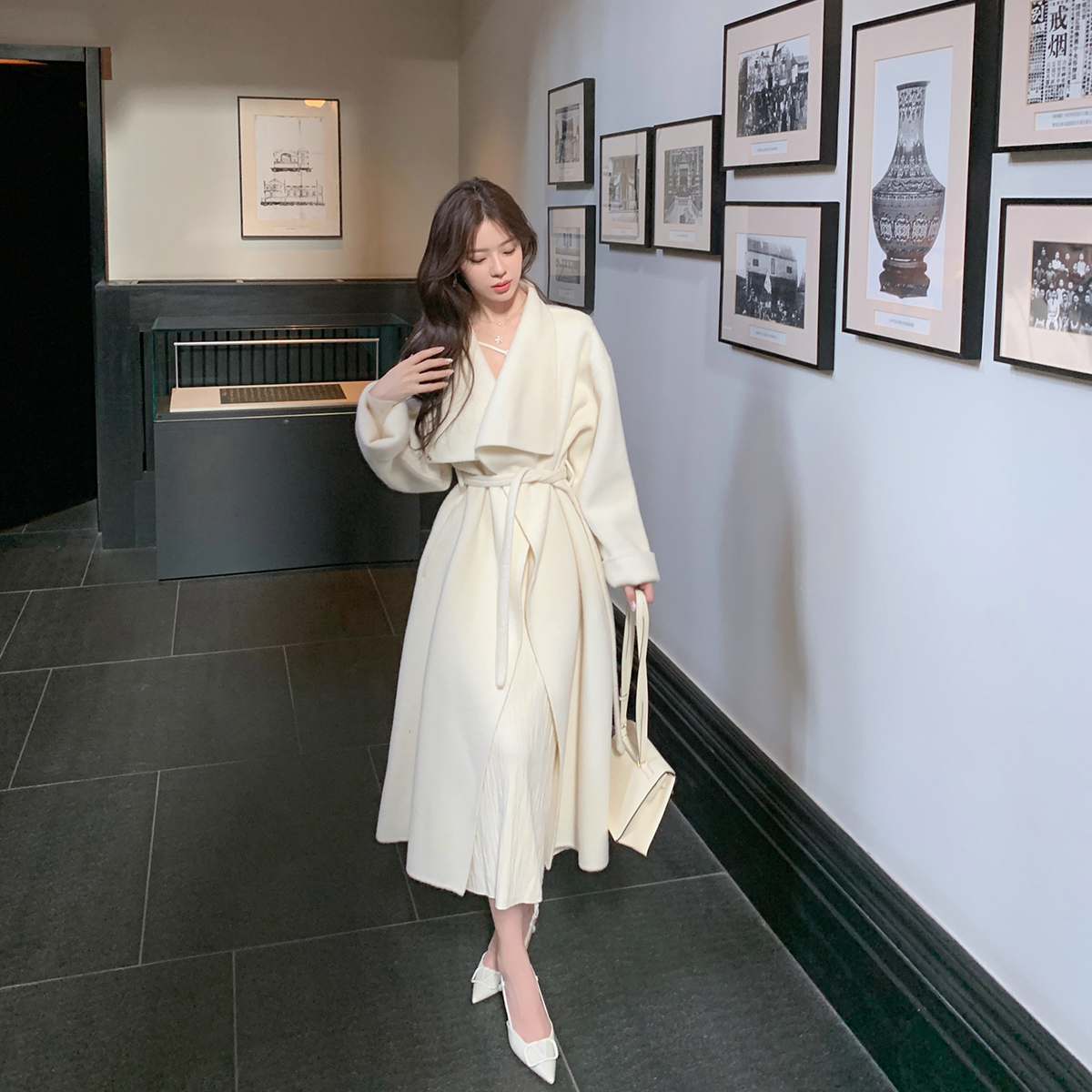 ByYou 冬季澳洲棉羊毛高端白色双面呢大衣女加厚长款羊绒毛呢外套