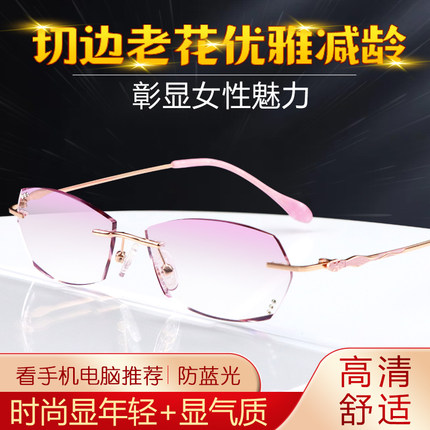 女士时尚洋气无框钻石切边老花镜