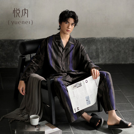 悦内睡衣男士春秋款秋季纯棉长袖家居服男款时尚休闲复古套装