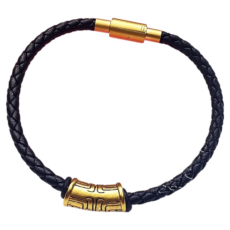 新款流行饕餮黑手绳吉祥黑皮绳手链男士明星款小贺同款峻霖镀金