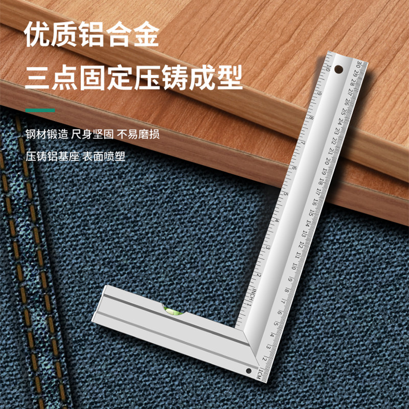 保联直角尺90度铝型材拐尺木工专用水平尺多功能角度尺钢尺三角尺