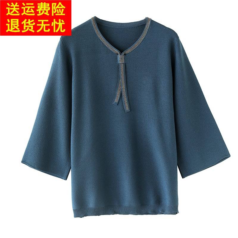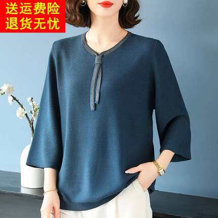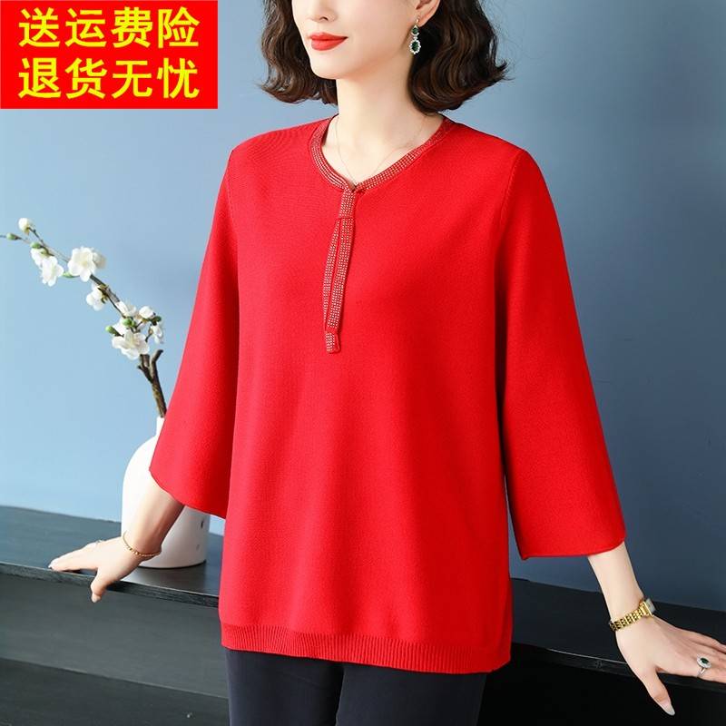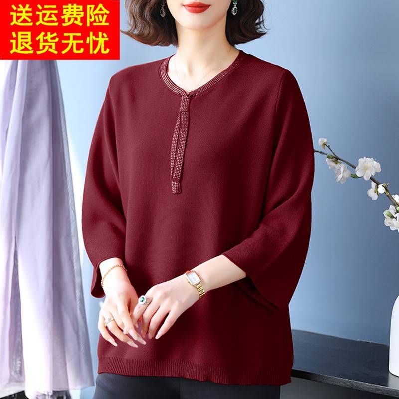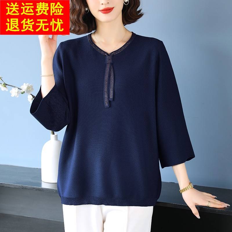 中老年妈妈春装新款冰丝上衣夏季洋气针织小衫特大码女装宽松t恤