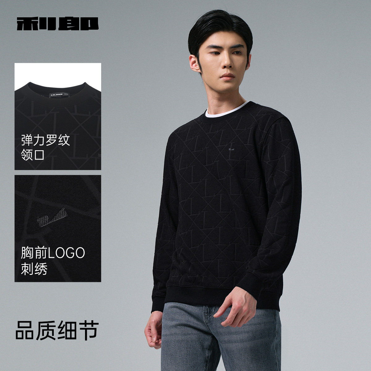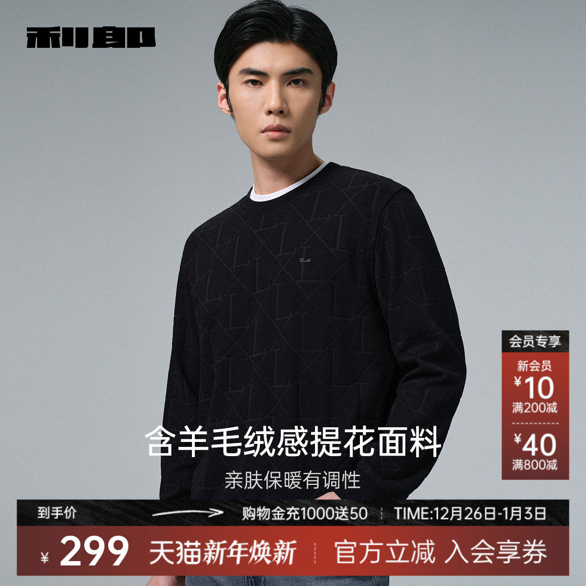【含羊毛/肌理】利郎长袖卫衣男士圆领提花刺绣2025冬季T恤打底衫