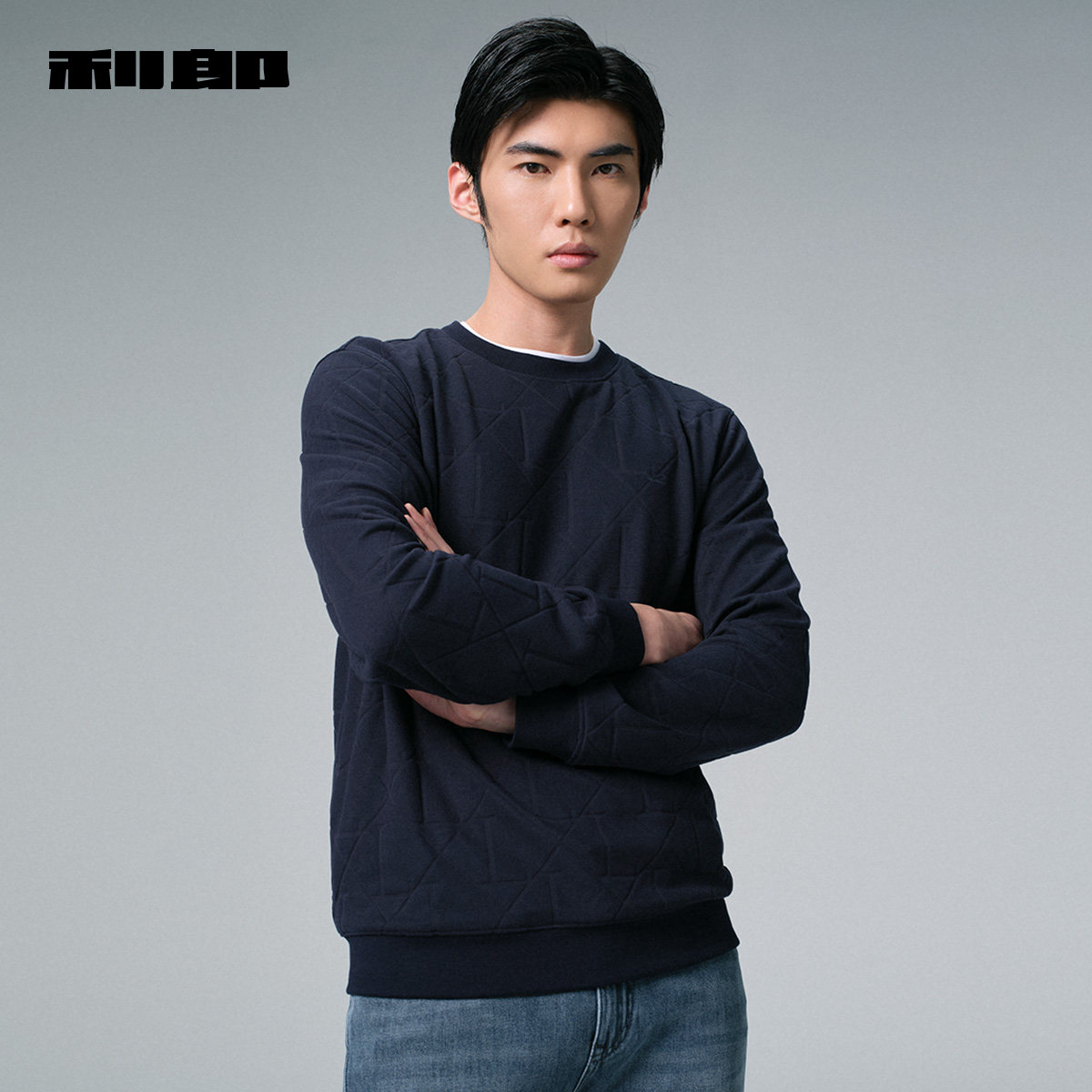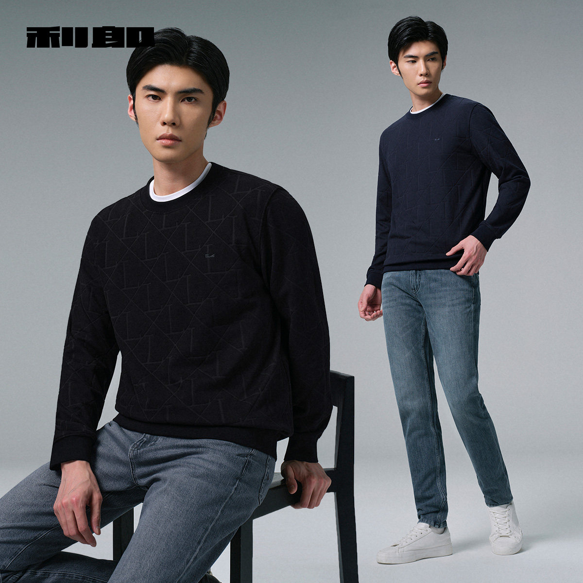 利郎官方绵羊毛圆领提花刺绣卫衣