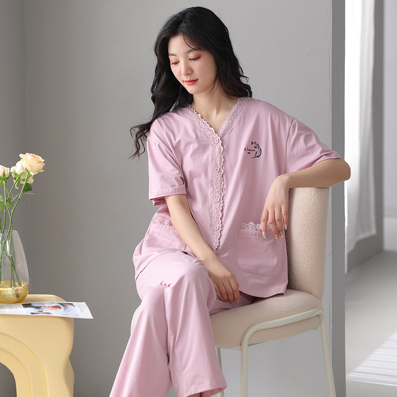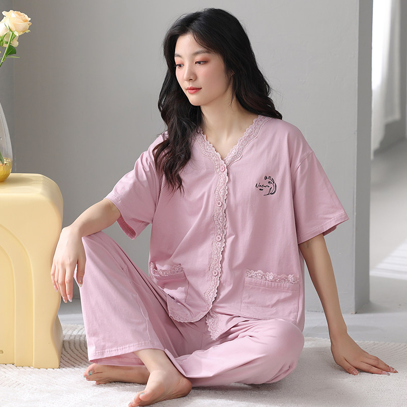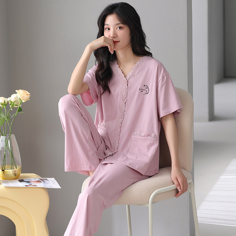 2024新款莫代尔睡衣女夏天短袖长裤夏季简约中年妈妈中老年人夏装