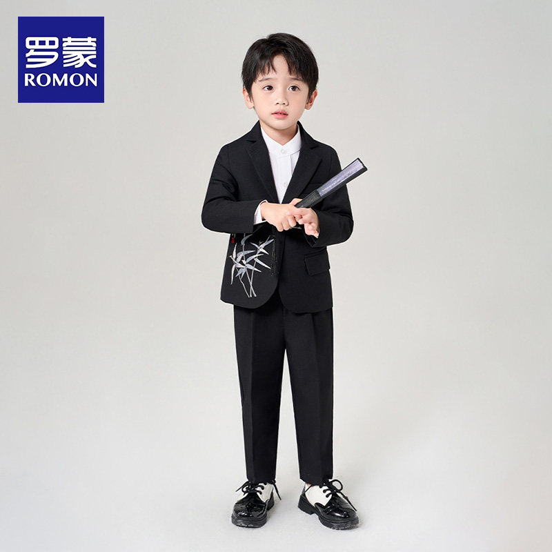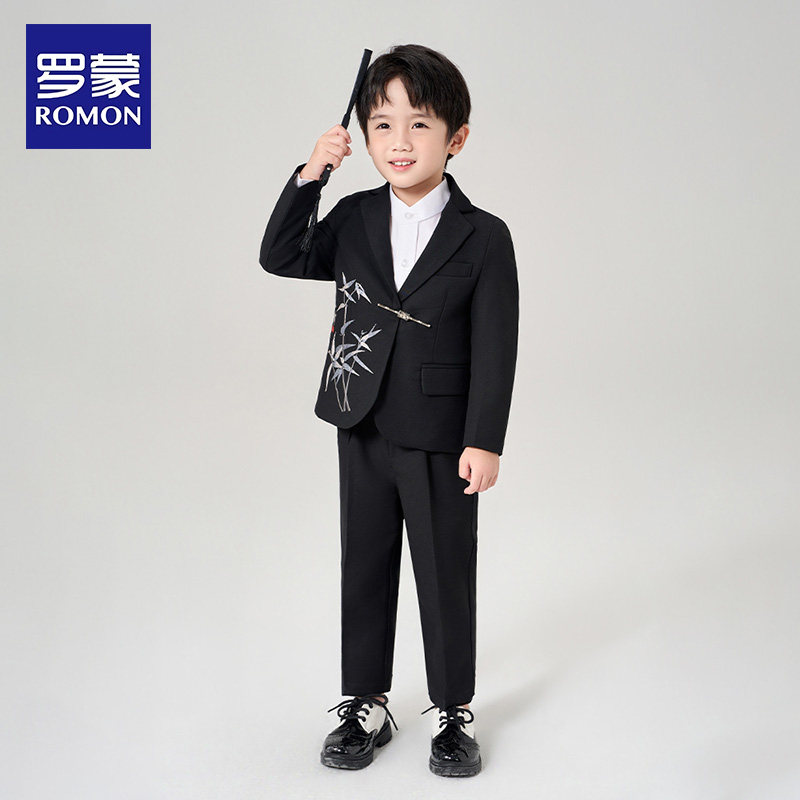 罗蒙儿童西装套装男童春秋新中式国风竹子男孩花童礼服走秀演出服
