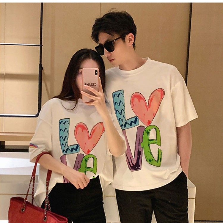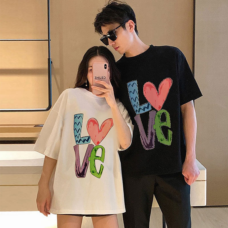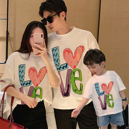 亲子装2025新款夏装涂鸦LOVE爱心一家人短袖T恤母女家庭装情侣装