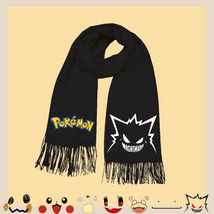 精灵宝可梦谜拟Q耿鬼皮卡丘联名二次元男女休闲披肩围脖保暖围巾