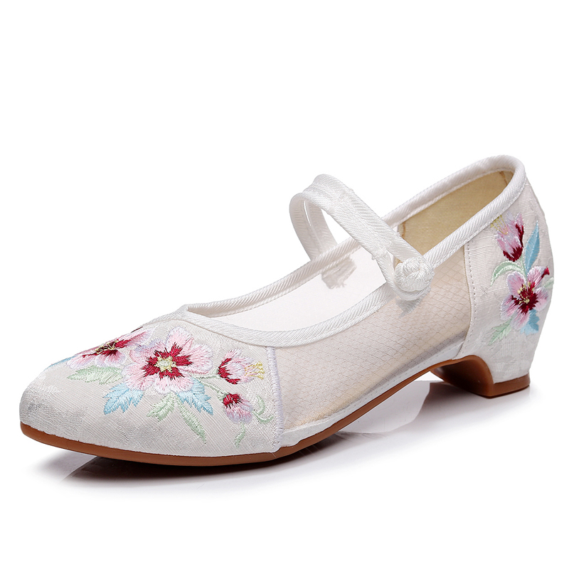 老北京布鞋夏季女式复古绣花鞋妈妈凉鞋女夏中跟百搭民族风女鞋网
