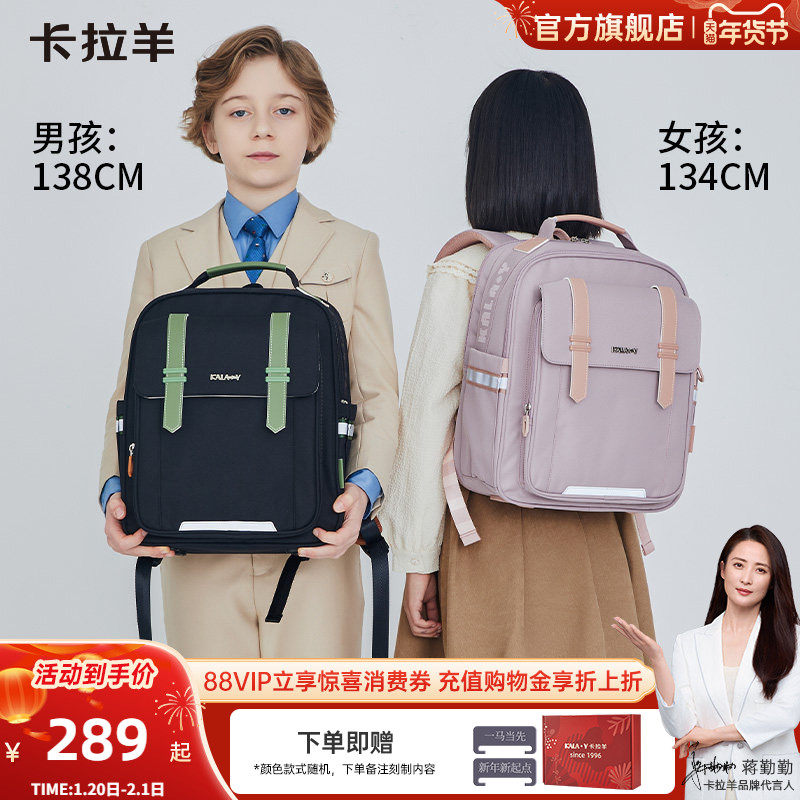 卡拉羊中小学生云朵书包轻便减负防下坠大容量防泼背包男双肩包女