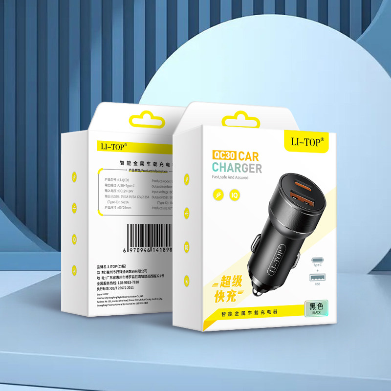 力拓QC30车载充电器66W超级快充安卓usb点烟器插头Type-C双口闪充