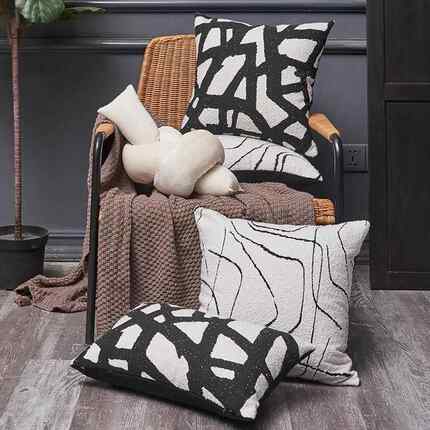 沙发上好看的抱枕雪尼尔几何靠枕扭扭条打结 客厅靠枕套