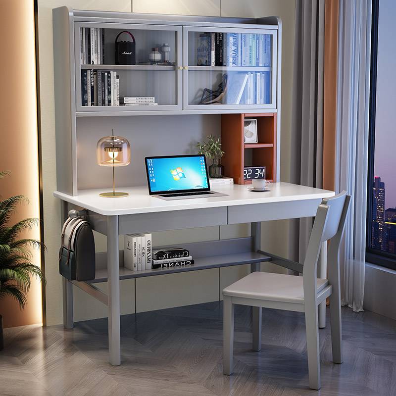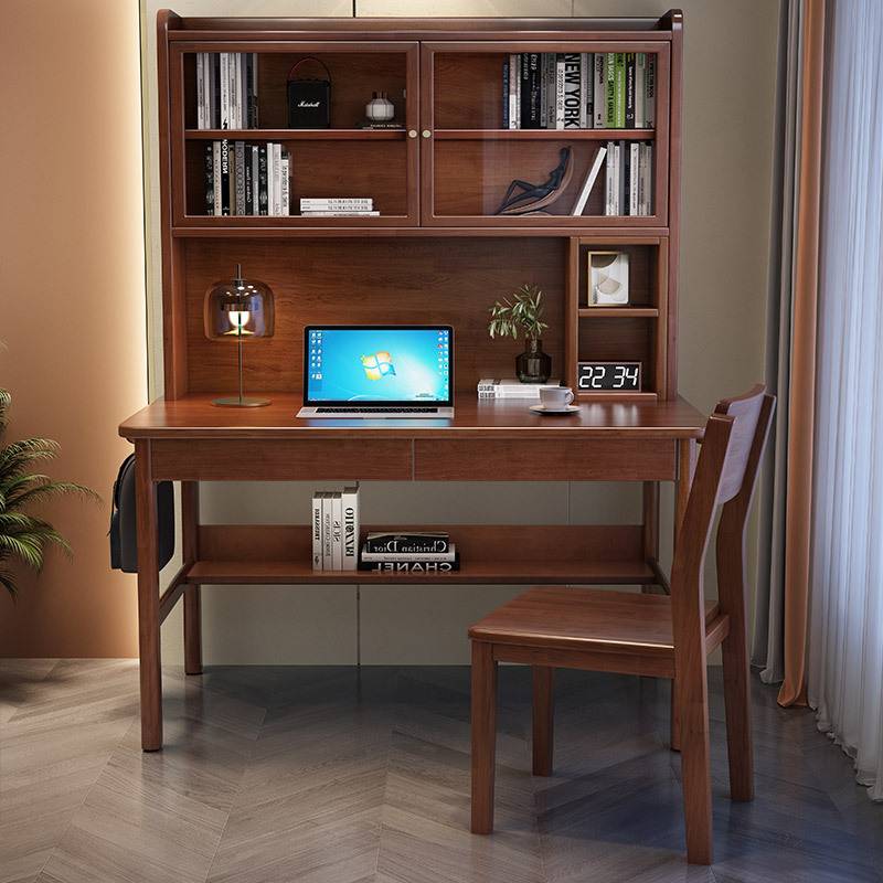 全实木书桌书架书柜一体组合家用办公桌台式电脑桌卧室学生写字桌