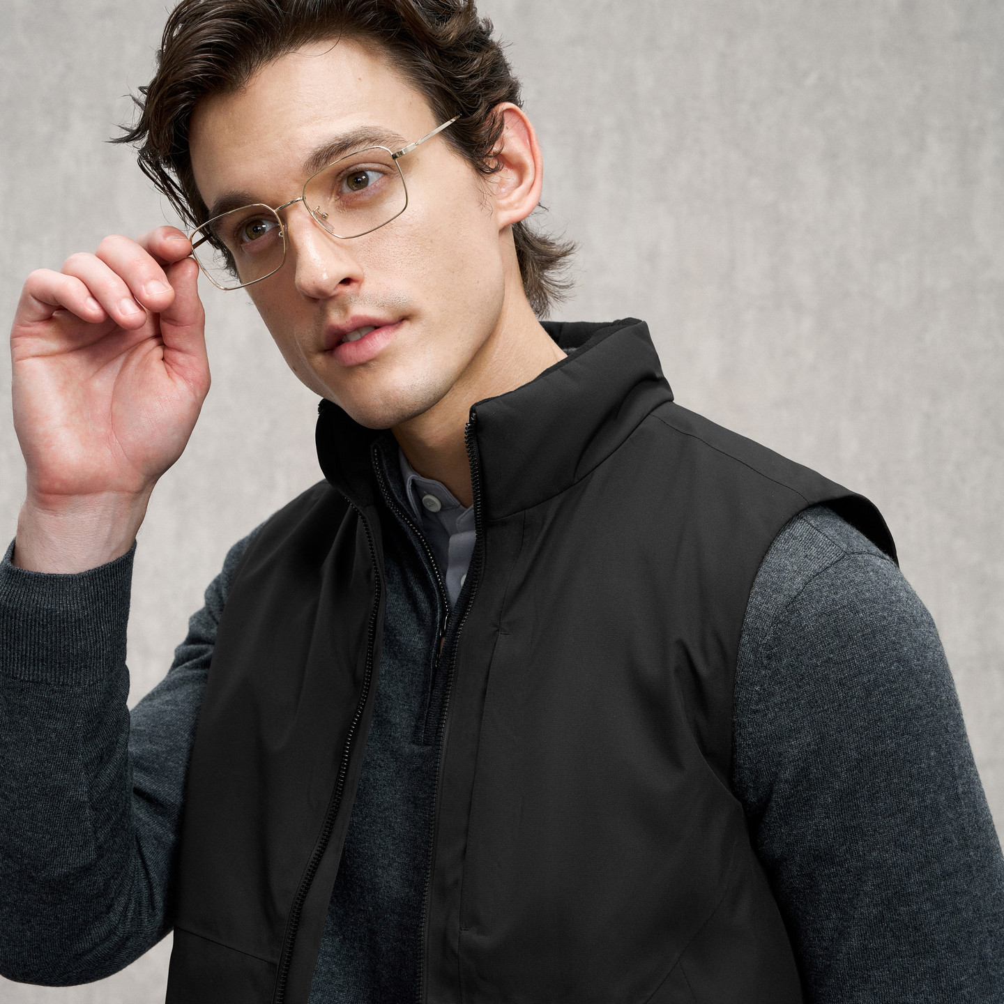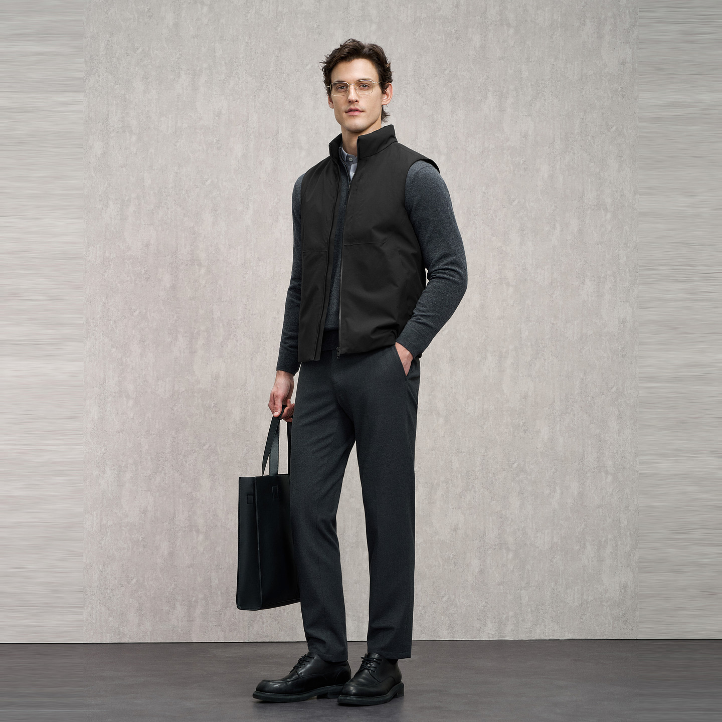EMZ鄂尔多斯25冬季新款轻薄商务休闲鸭绒羽绒服立领黑马甲外套男