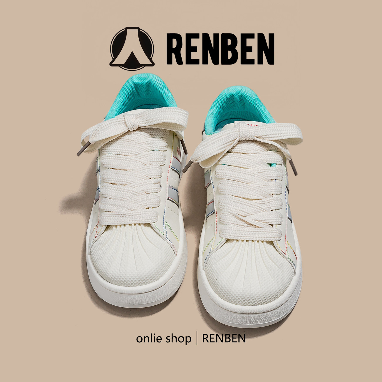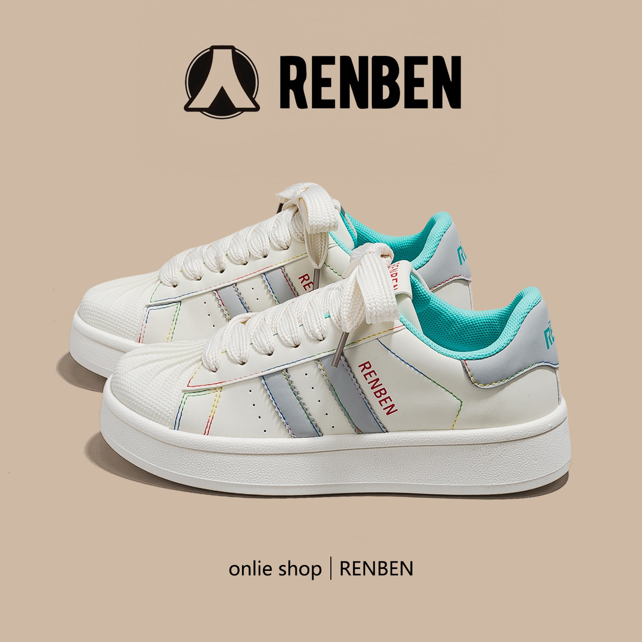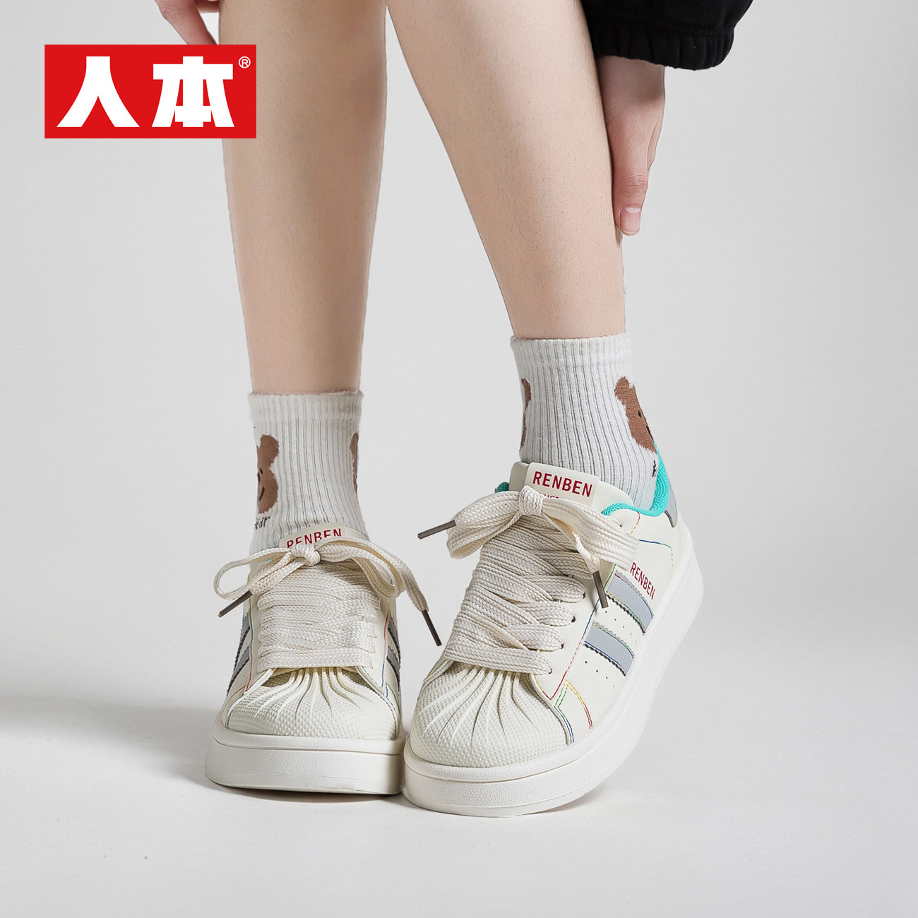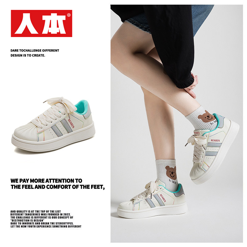 人本厚底贝壳小白鞋女2025夏季新款超火迷彩红小众休闲百搭板鞋子