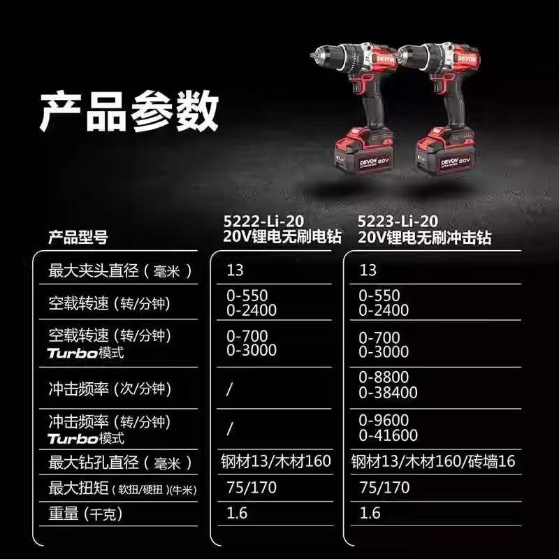 大有5223锂电无刷冲击钻多功能电钻电锤起子机冰钻开孔钻大功率