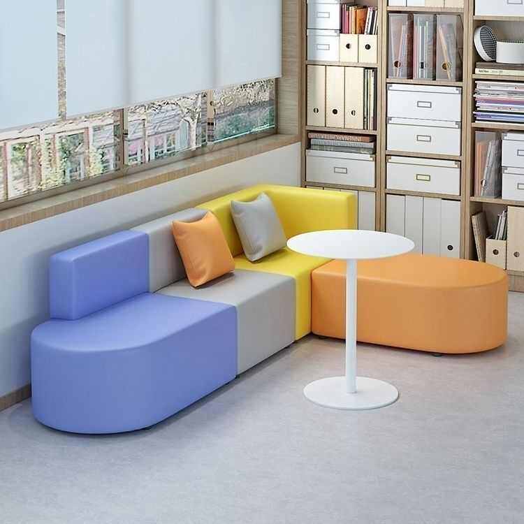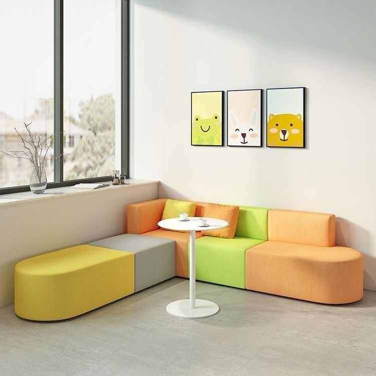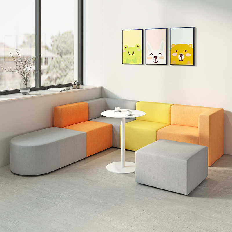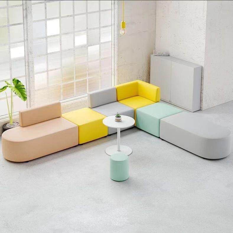办公室休闲创意转角沙发简约现代培训机构接待小方块个性拼色沙发