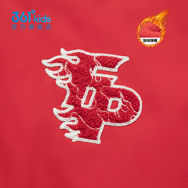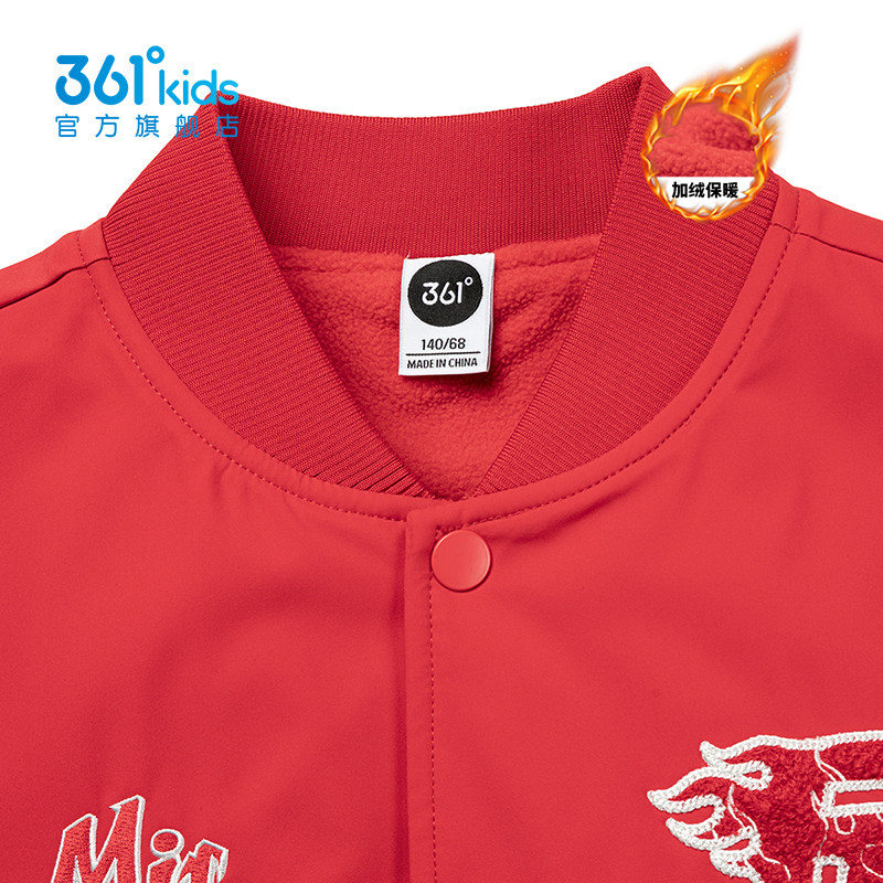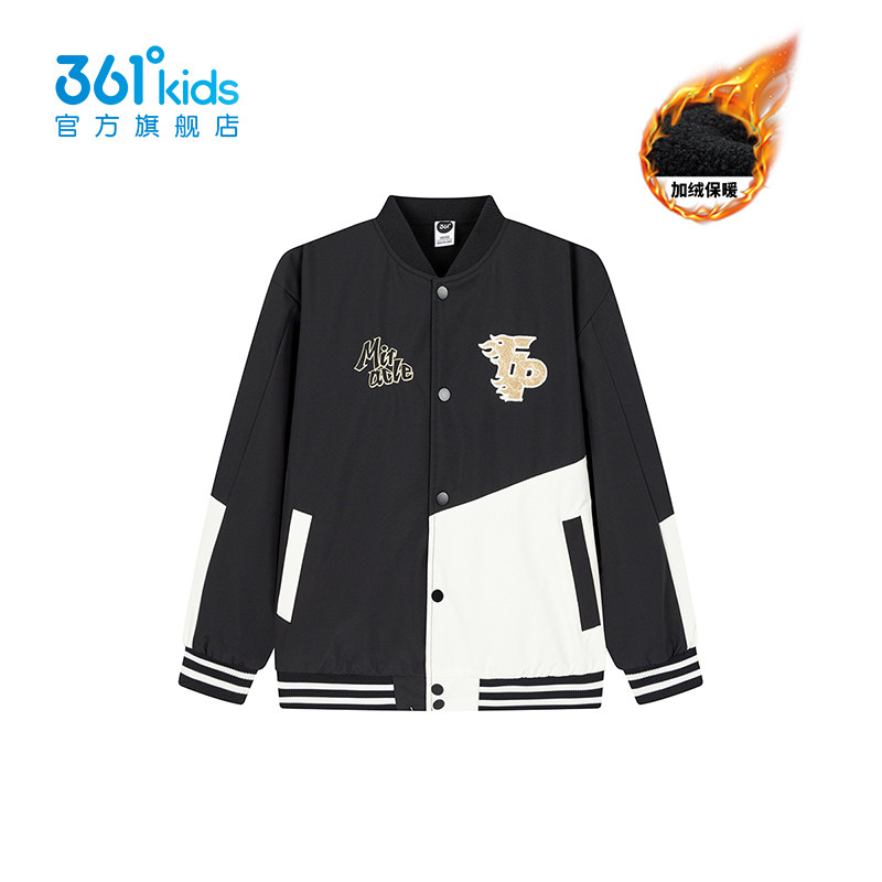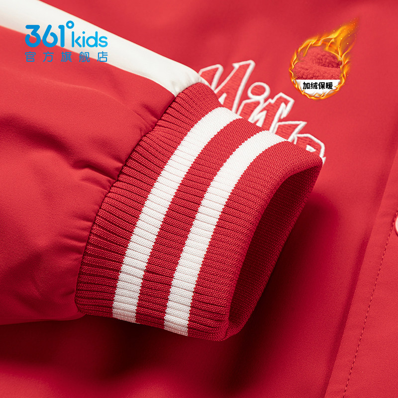 361度男童棒球服2025加绒保暖外套秋冬美式复古撞色夹克K52613602