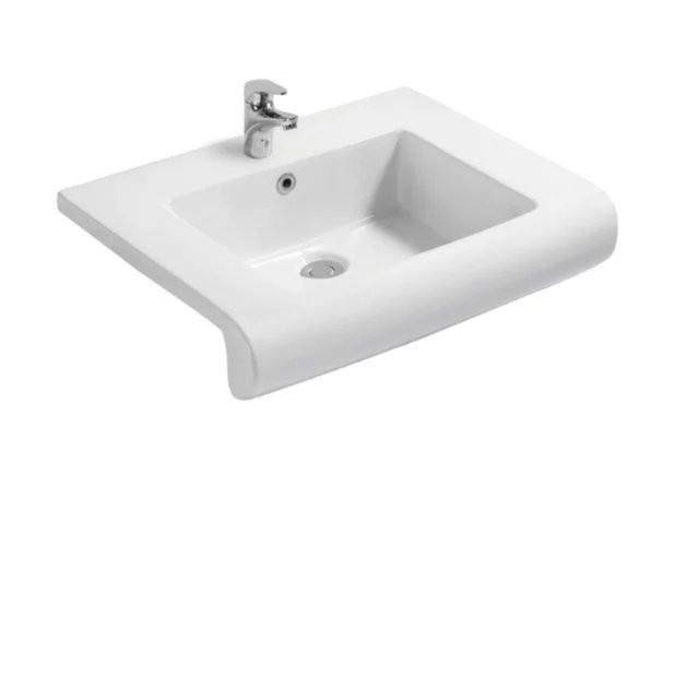 陶瓷一体洗面盆方形洗脸盆半嵌入式台面卫生间浴室柜半挂台盆单盆