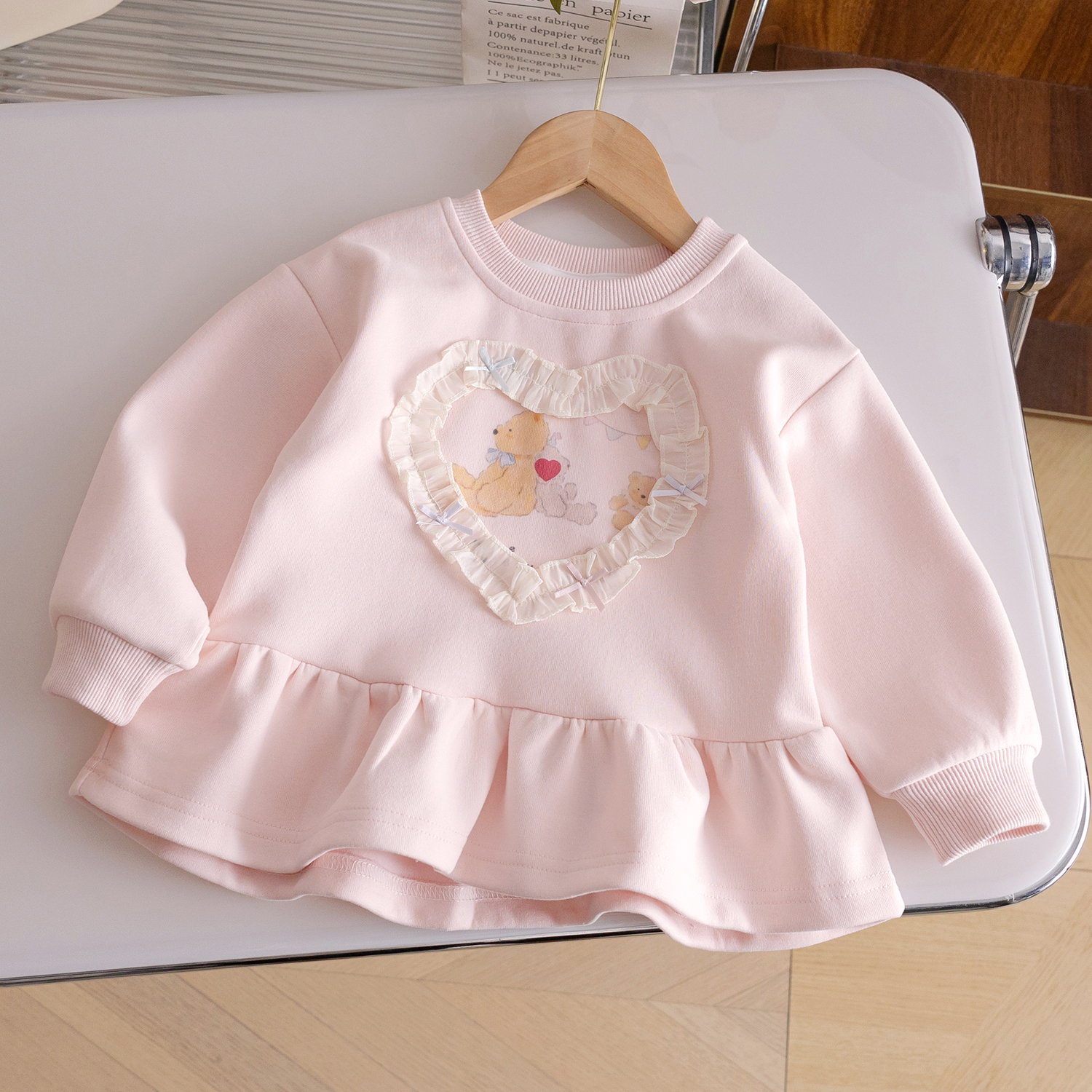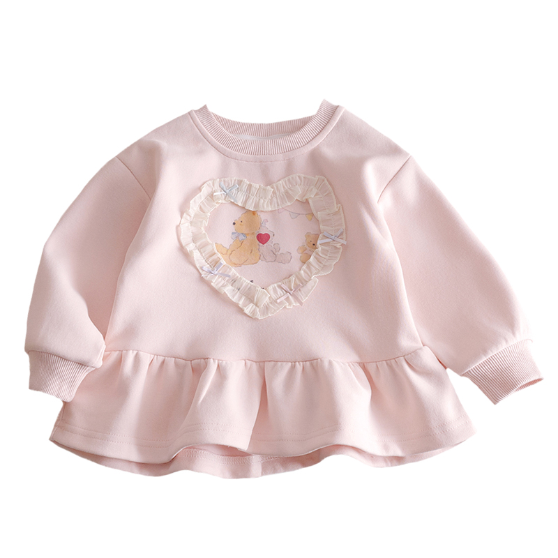 女童印花秋装2025新款洋气卡通印花蕾丝爱心可爱花边百搭打底衫潮