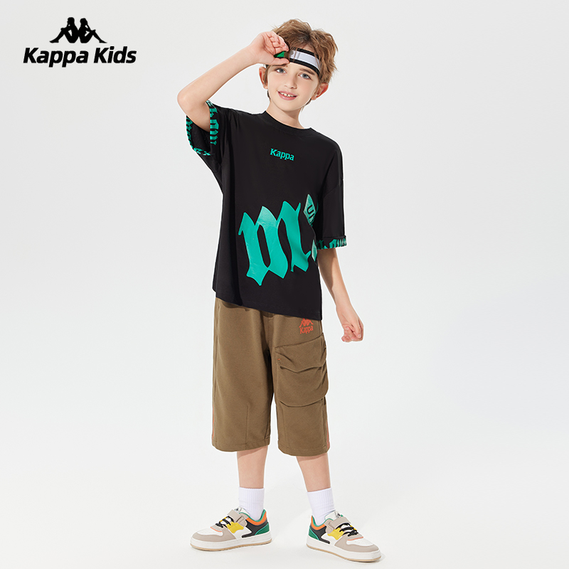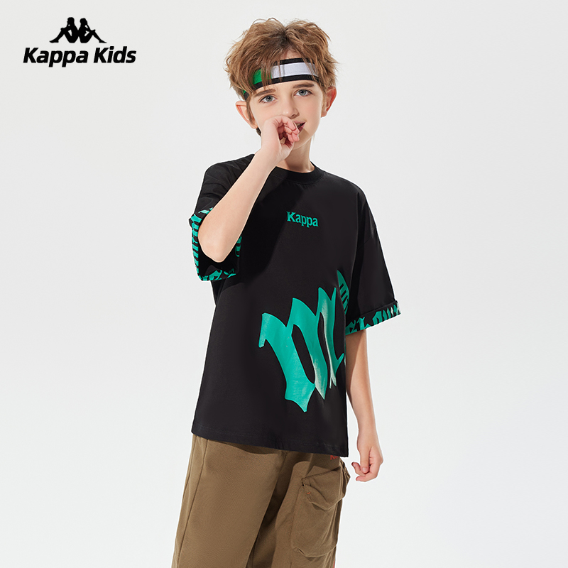 Kappa卡帕童装儿童短袖t恤2025夏季新款男童纯棉字母印花半袖上衣