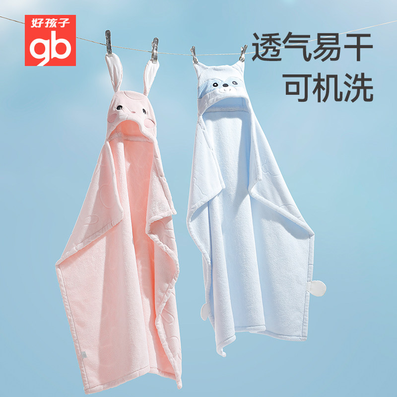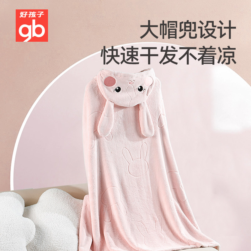 gb好孩子儿童浴巾卡通连帽披风斗篷浴袍可爱可穿毛巾柔软浴披风