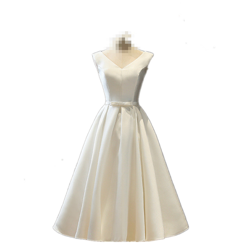 晚礼服2025新款女简约中长款伴娘宴会连衣裙旅拍缎面影楼名媛白色
