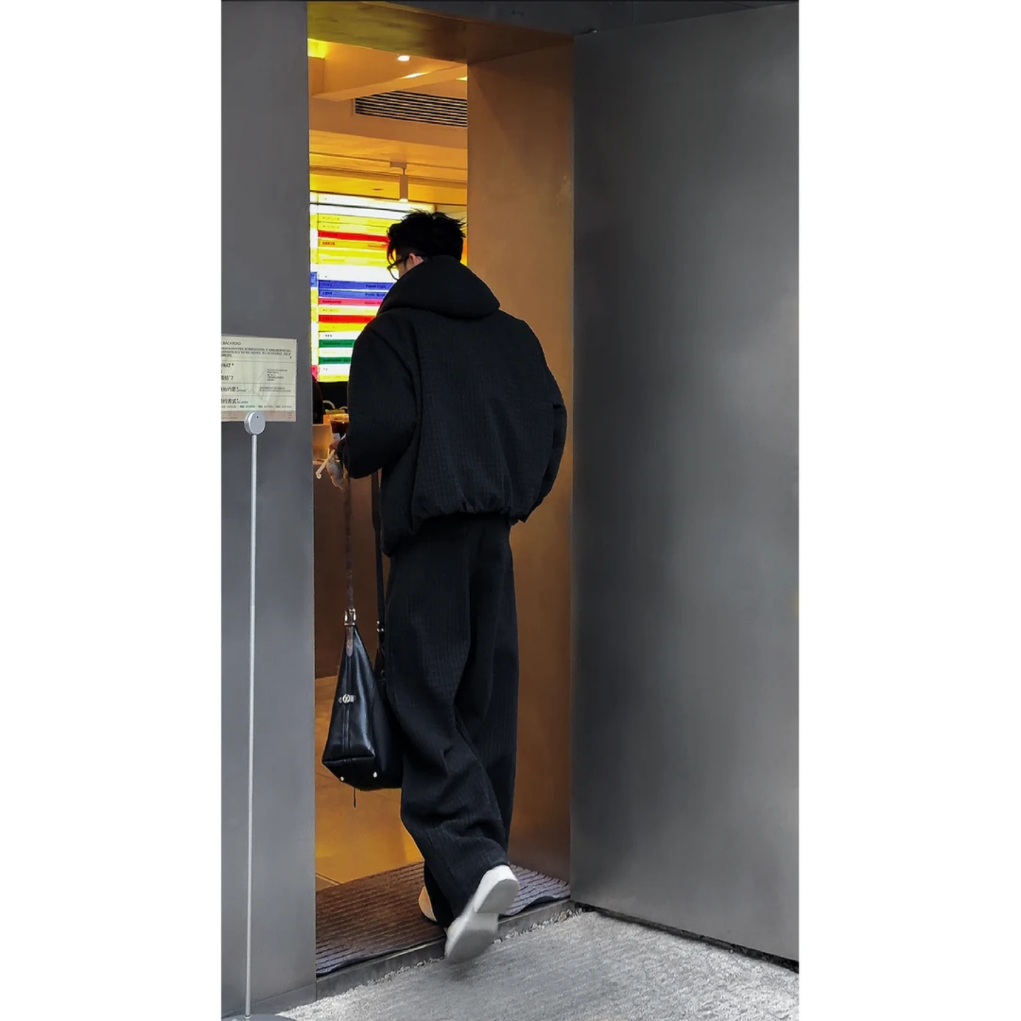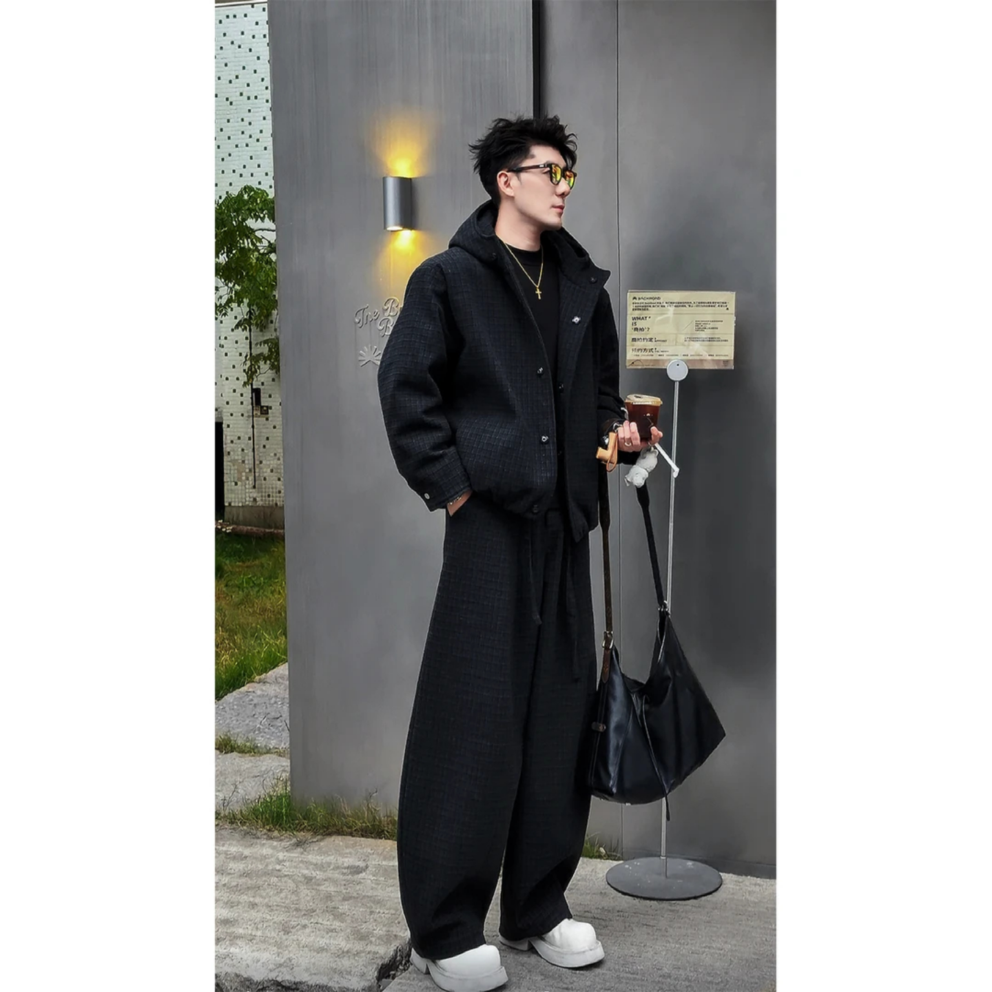 冬季新品小众高级感复古格子夹克套装男潮流百搭重磅外套休闲长裤