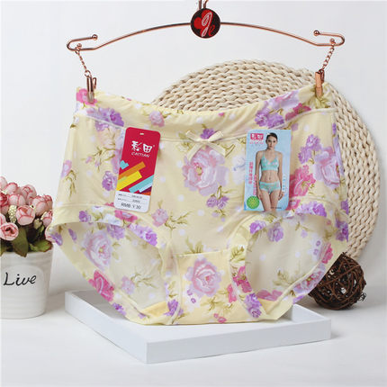 彩田内裤正品 高腰女无痕冰丝纯棉裆超薄牛奶丝收腹大码平角内裤