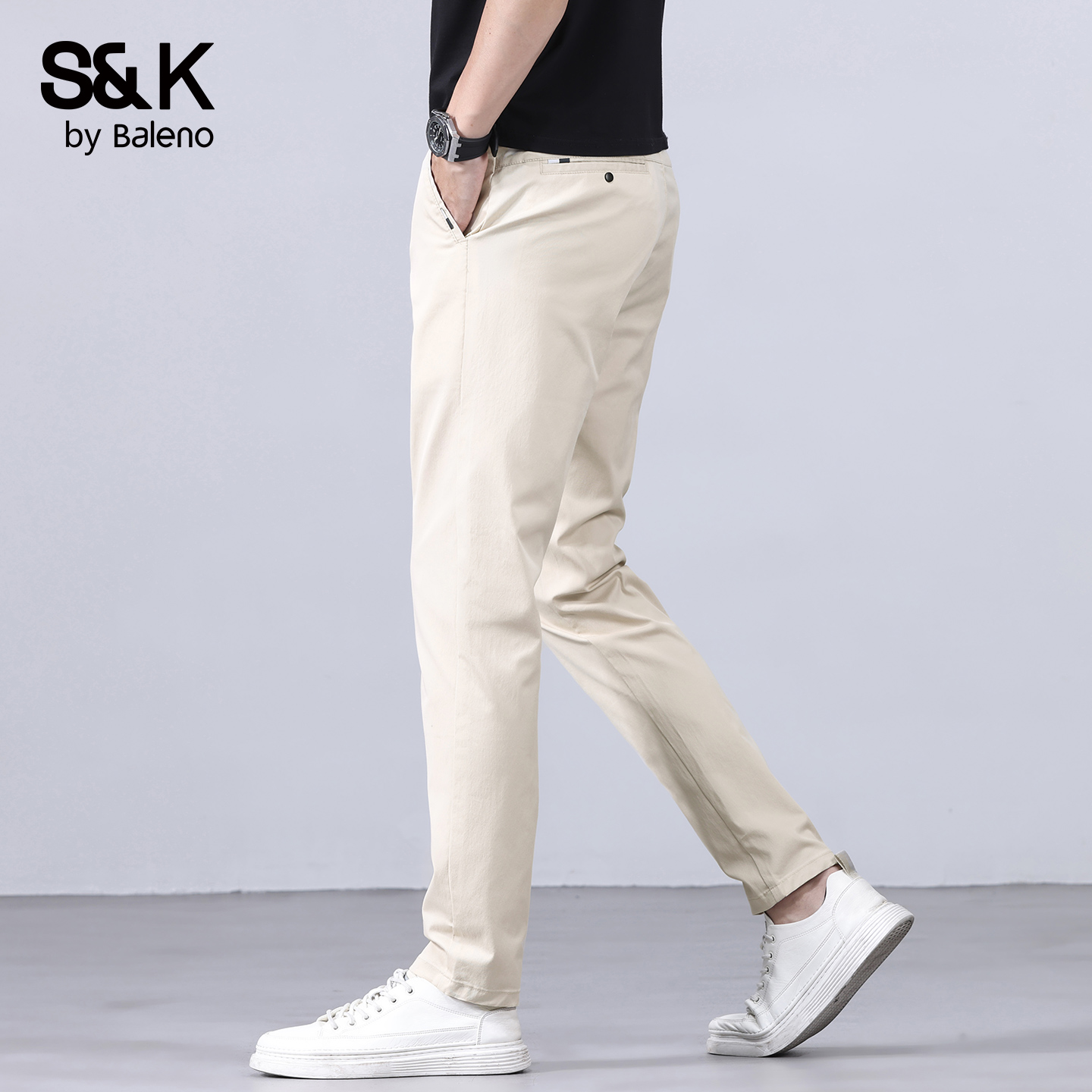 班尼路SK冰丝裤男士休闲裤夏季薄款修身直筒夏天高端商务西装裤MS