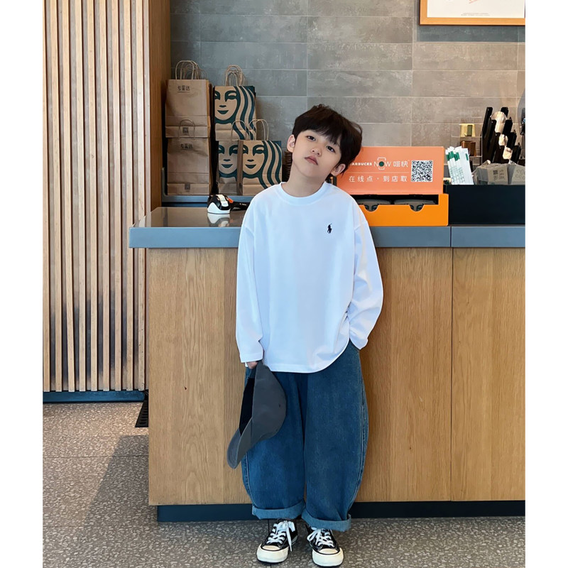 凯文家童装春秋新款男童中大童韩版简约儿童休闲宽松长袖T恤