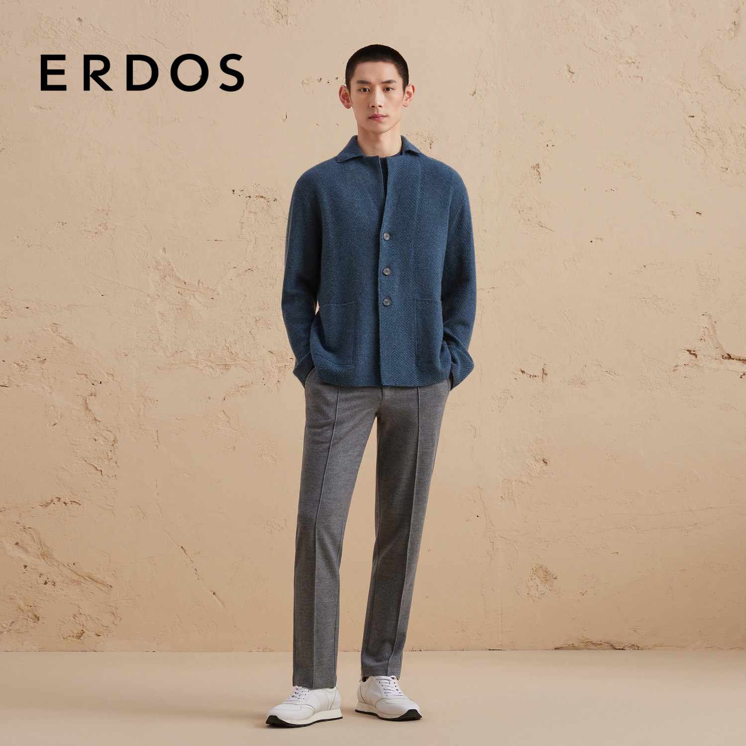 ERDOS 羊绒开衫秋冬西服领衬纬男针织衫厚款百搭舒适