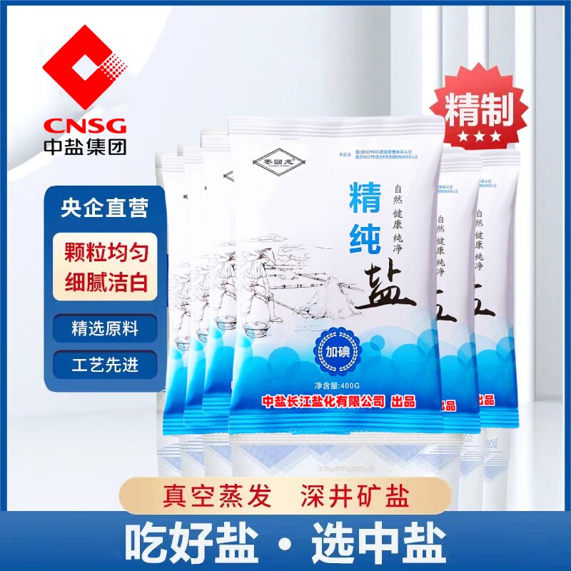中盐枣回龙精纯盐食用盐细盐巴加碘家用食盐调味品央企