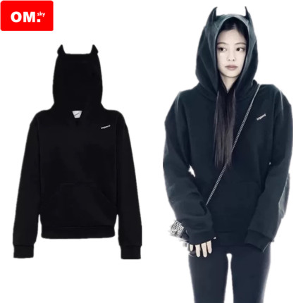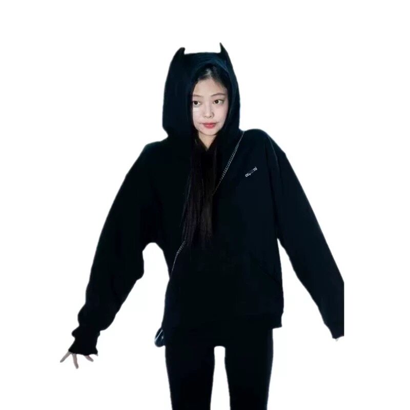 jennie明星同款小恶魔设计感美式纯棉宽松字母印花连帽卫衣女秋冬