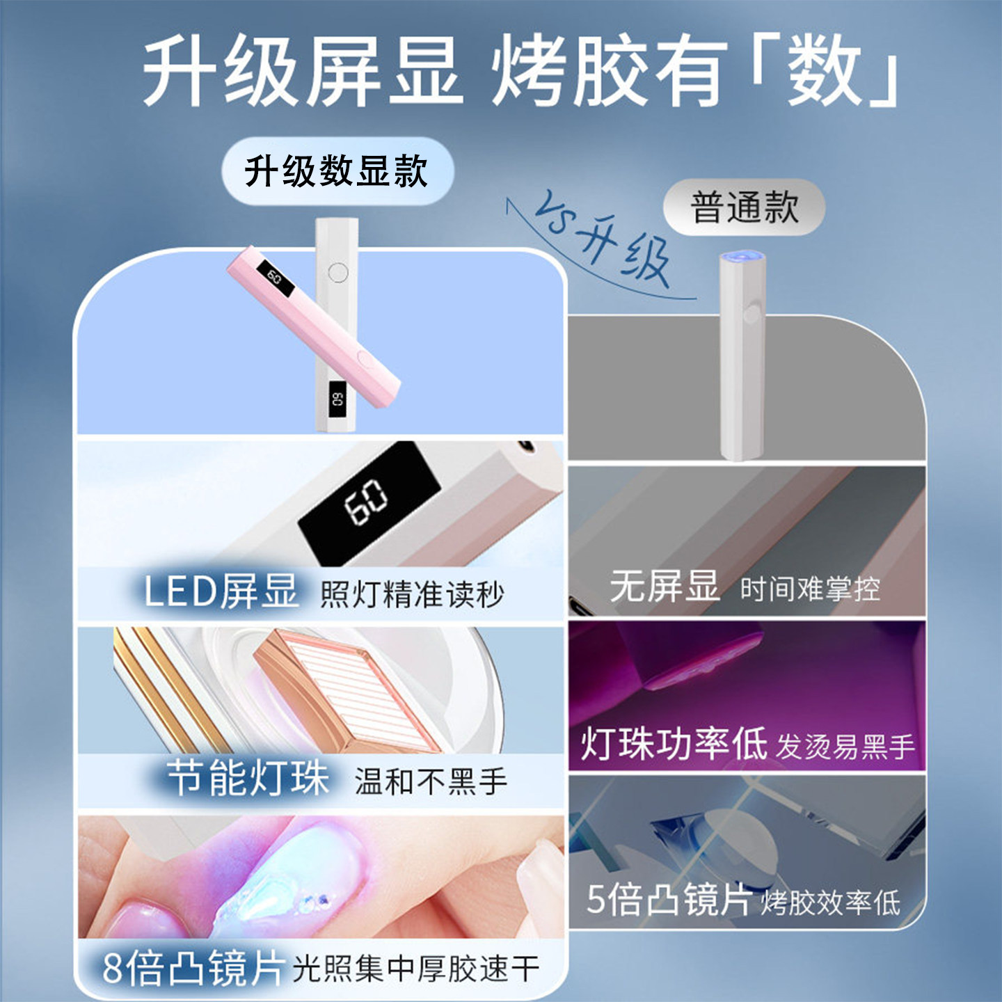 速干不黑手!三代数显一字美甲灯