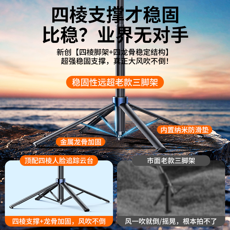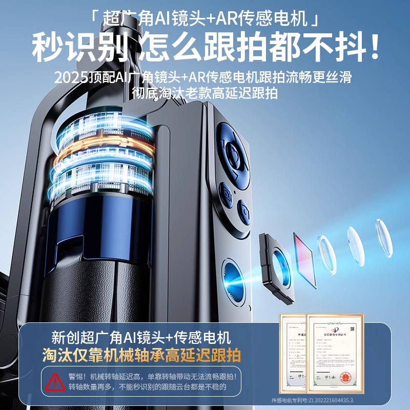 【智能AI跟拍云台】2025新款四轴自拍杆人脸追踪360旋转旅游便携拍照Vlog拍摄手机直播三脚架支蓝牙防抖补光