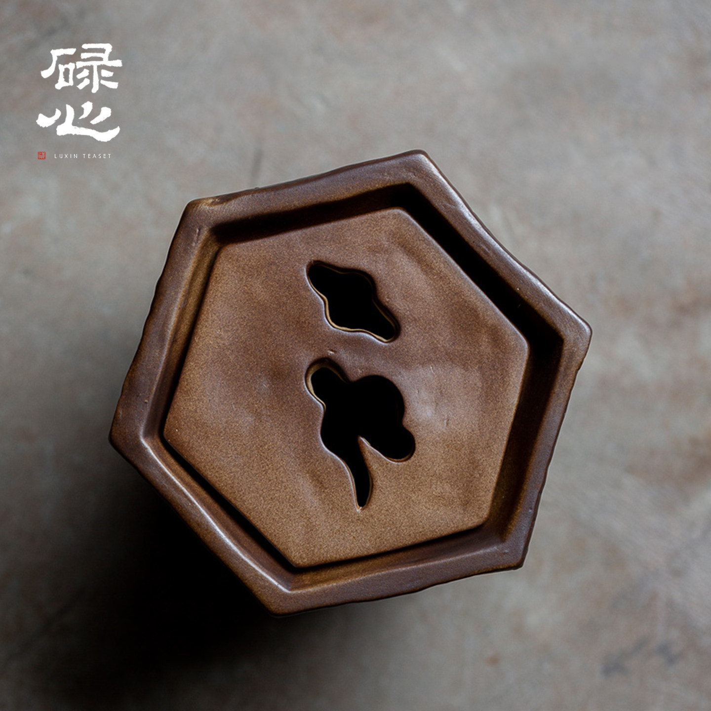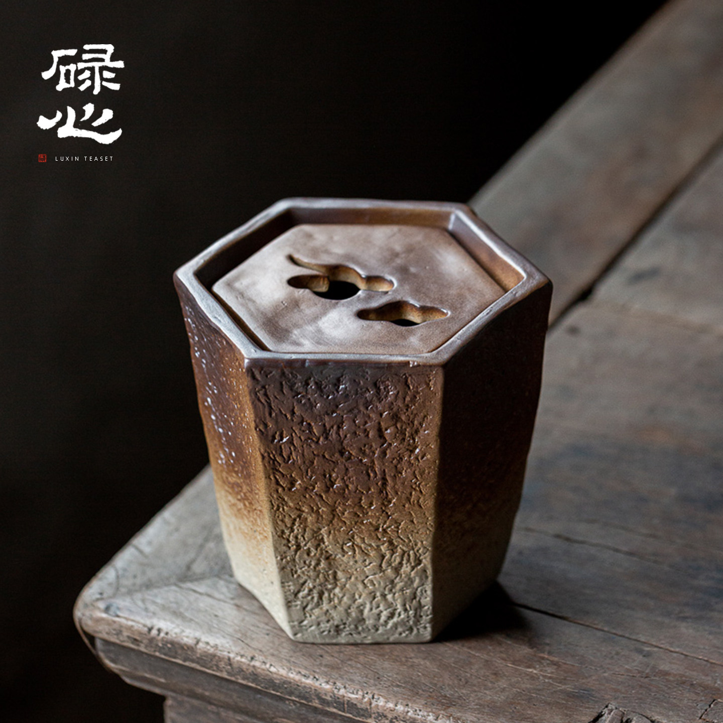 碌心 柴棕釉六方建水 家用禅意茶渣缸带盖茶洗中式复古大号茶水盂