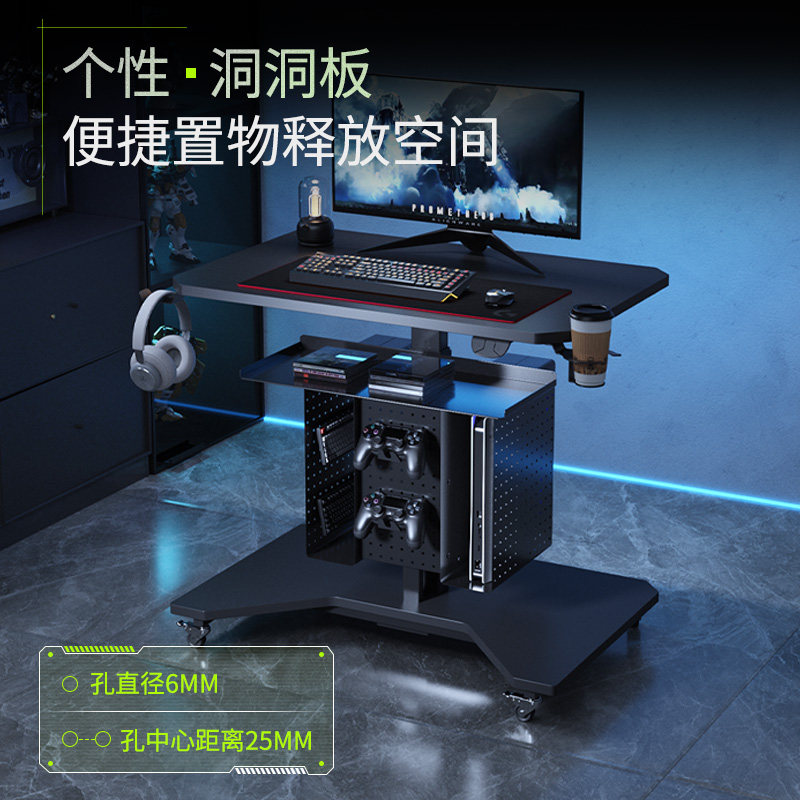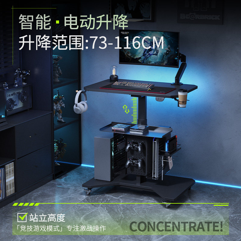 小户型电动升降桌家用带轮可移动床边桌子PS5一体收纳电竞电脑桌