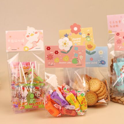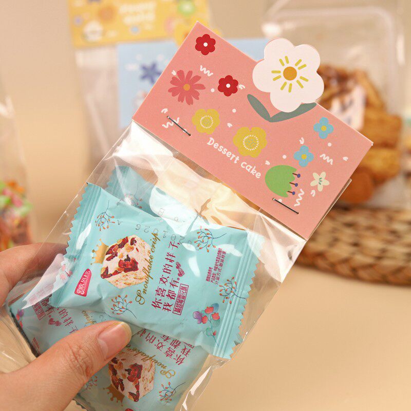 烘焙小花透明可视卡片袋雪花酥牛轧糖糯米船曲奇饼干棒棒糖包装袋