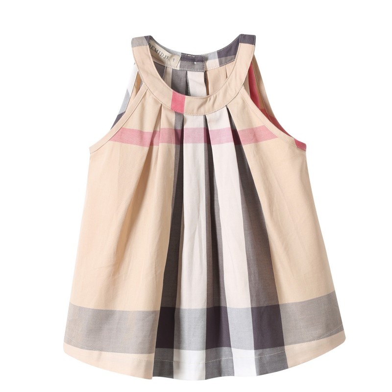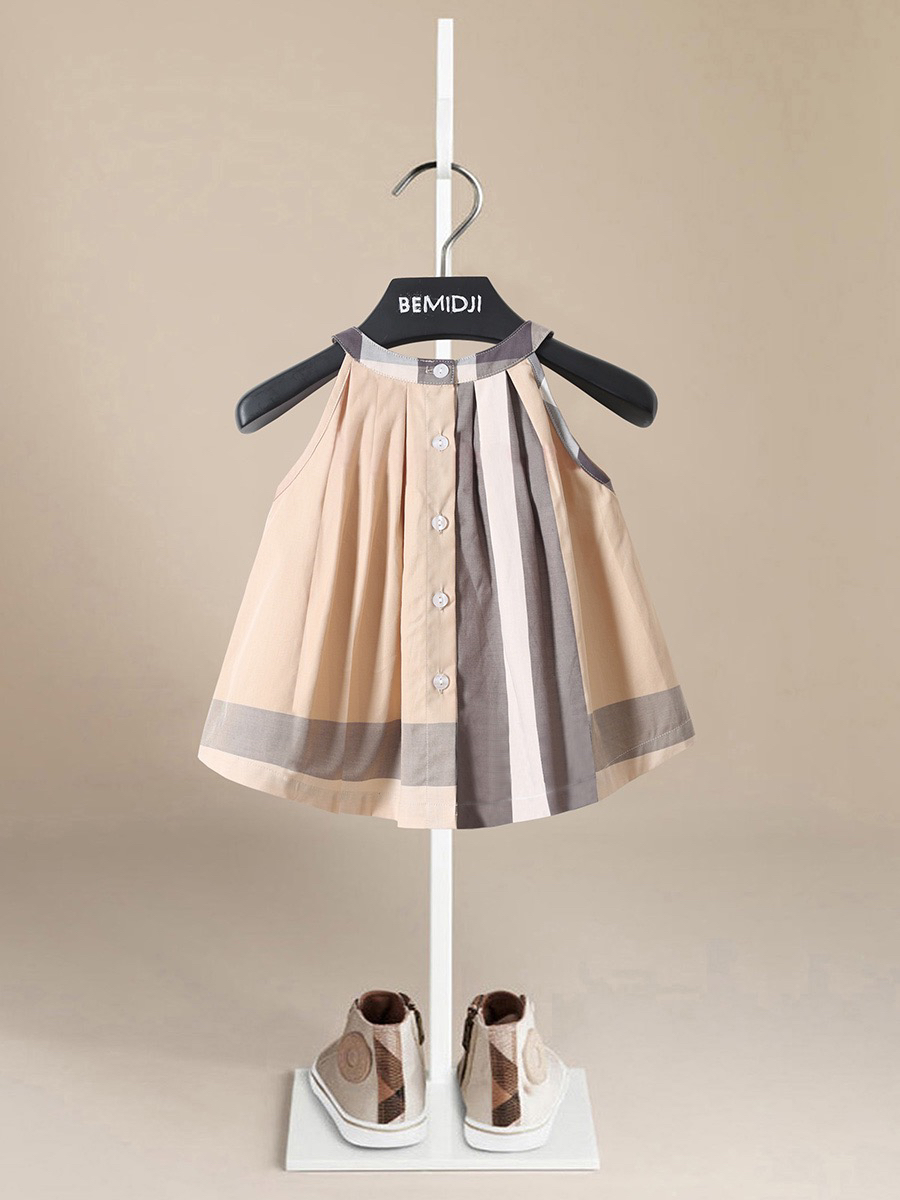 女童薄款挂脖不脱肩吊带连衣裙宝宝儿童小中大童装宽松格子裙纯棉