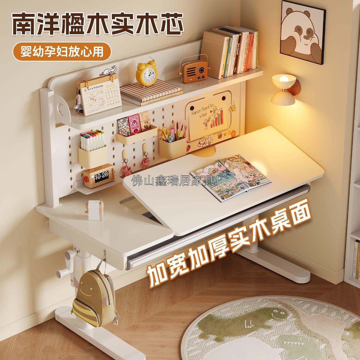 升降儿童学习级桌实木洞洞板写字桌卧室书升书房UEH简易款木质家