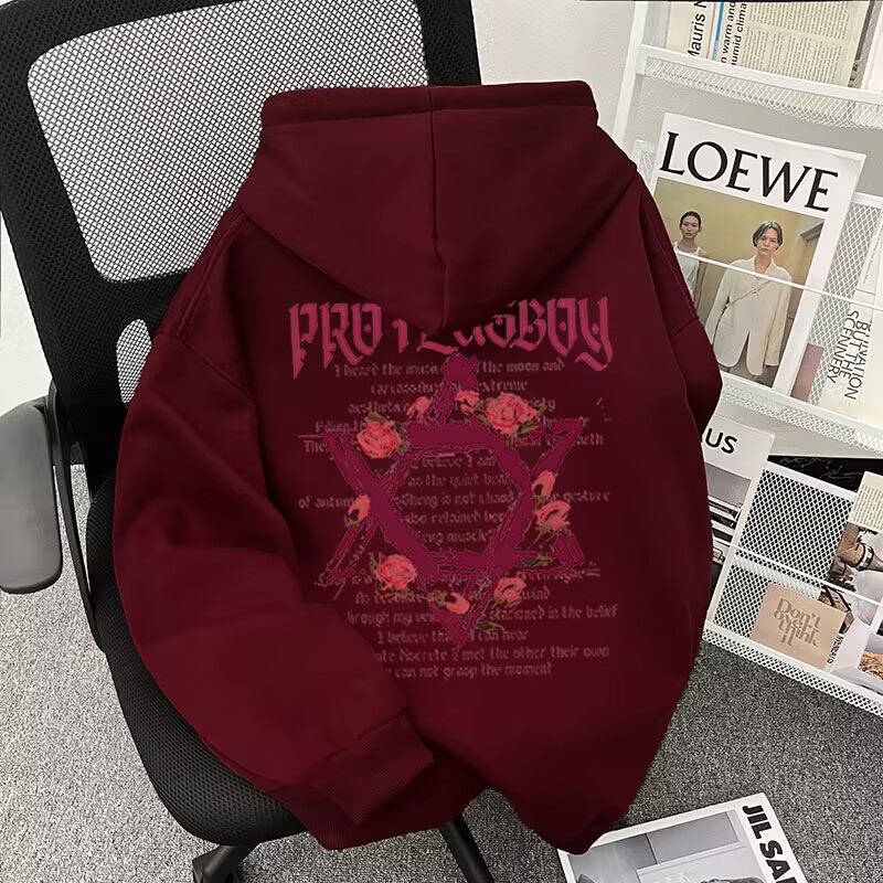 男女童连帽秋冬季卫衣2025新款玫瑰六芒星潮流中大童宽松百搭外套